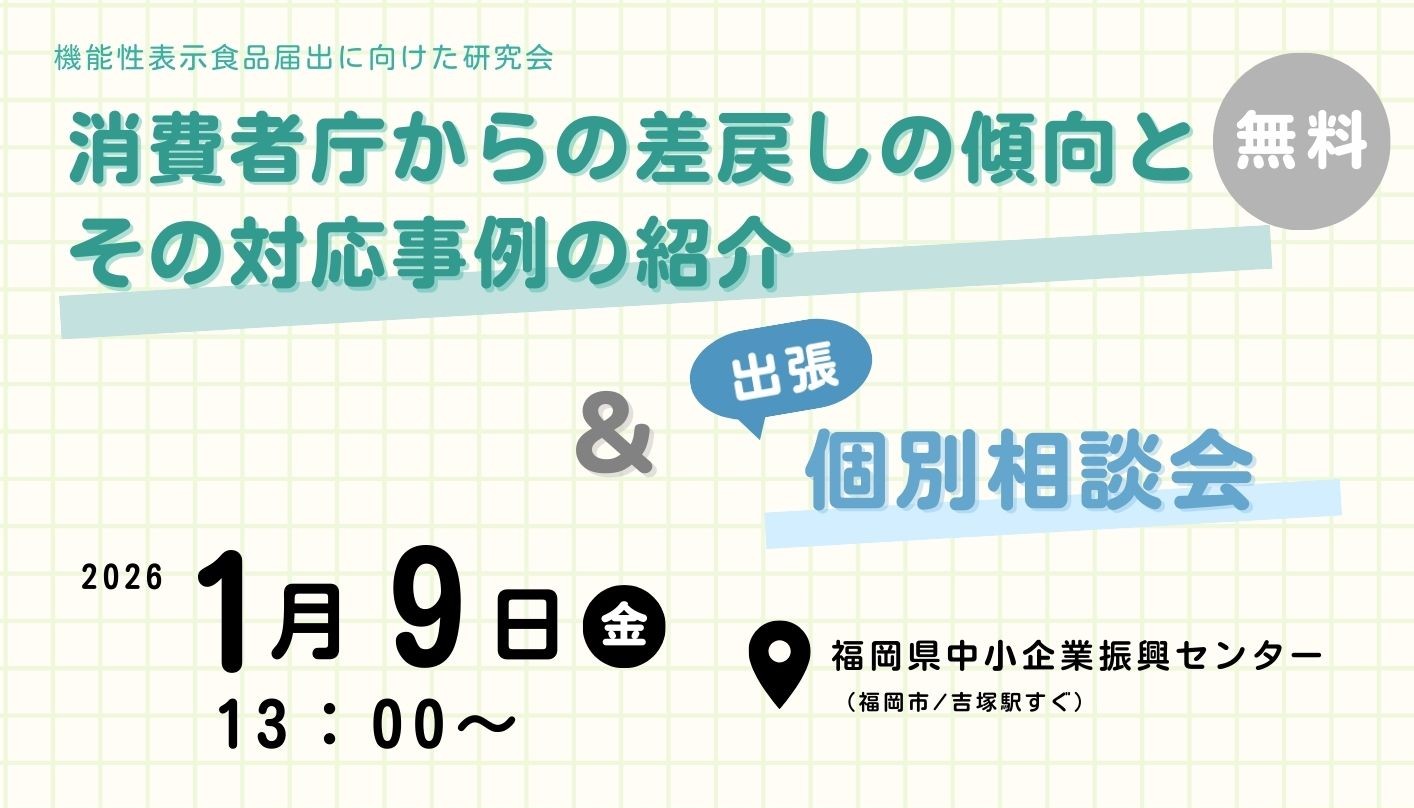 機能性表示食品届出に向けた研究会 「消費者庁からの差戻しの傾向とその対応事例の紹介&個別相談会」